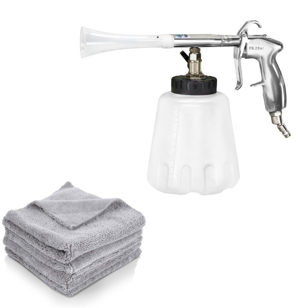 BenBow pneumatická čisticí pistole PRO série + 5 x mikrovláknová utěrka - profesionální vnitřní čistič s tornádo efektem pro údržbu automobilů, silné čisticí účinky na autosedačky.