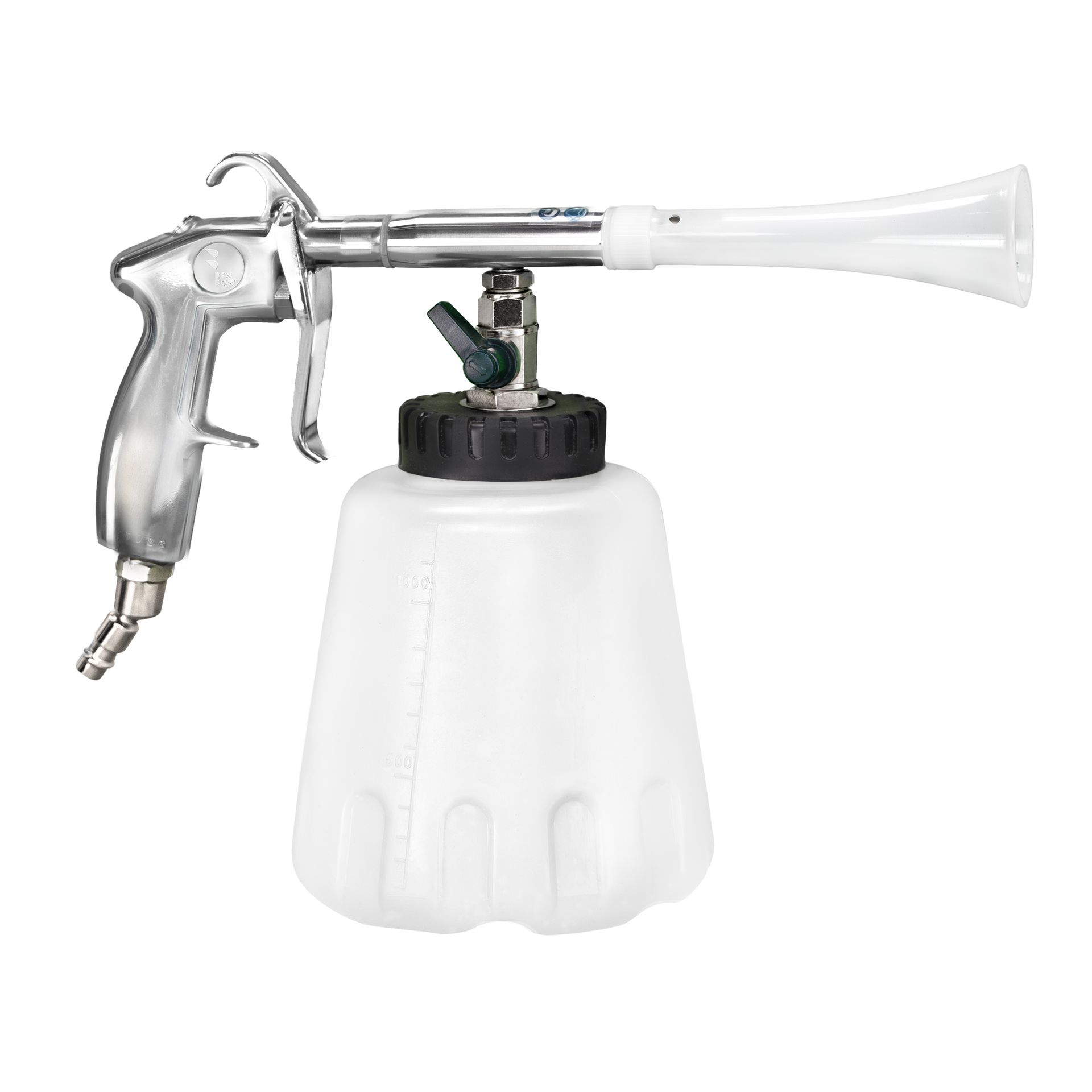 Čisticí pistole, která využívá fyzikální tornádový efekt, víří nečistoty a usazuje je uvnitř trychtýře. Tato varianta využívá rychle rotující silikonovou hadici. Díky rychlému otáčivému pohybu se vytváří malá vírová bouře, která spolu s čisticím prostředkem zajišťuje mimořádně přesné čištění. Čisticí pistole může být používána s běžně dostupnými čističi interiérů. Je poháněna stlačeným vzduchem, ideálně od silného kompresoru, který dodává přibližně 200-250l/min při 8 barech.